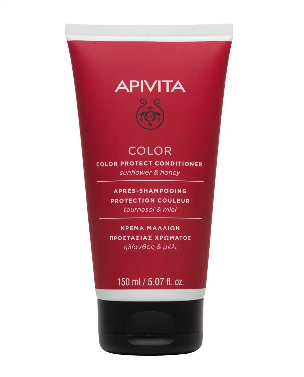 APIVITA Acondicionador Protector Cabello con Color Gracias a su formulación con girasol y vitamina E, APIVITA Acondicionador Protector Cabello con Color mantiene y prolonga el brillo y la vitalidad del cabello coloreado evitando la decoloración. Hidrata y ayuda a reparar el cabello coloreado a la vez que lo protege de los factores externos (radiación ultravioleta, contaminación, herramientas térmicas de peinado) con miel de tomillo, aceite de oliva y el complejo APISHIELD HS. Deja el cabello extremadamente suave, brillante y fácil de peinar. Ayuda a relajarte gracias a los aceites esenciales de lavanda y jazmín. El agua de esta fórmula ha sido reemplazada por una infusión tónica y antiedad de romero orgánico griego. Dermatológicamente testado. Compatible con homeopatía.