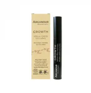 El sérum crece pestañas Growth de Arganour combina diferentes extractos de plantas para fortalecer, reparar y dar volumen a las pestañas. Gracias a su innovadora fórmula de origen 100% natural, sentirás tus pestañas más fuertes, sanas y nutridas. Si quieres unas pestañas largas y gruesas, Growth está hecho para ti. El sérum crece pestañas Growth está certificado vegano y cruelty-free por CAAE y ecológico por COSMOS.