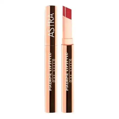 Astra Barra de Labios Madame Lipstylo The Sheer Potencia el volumen natural de tus labios con un velo de color con reflejos deslumbrantes. El pintalabios Madame Lipstylo The Sheer tiene una consistencia ligera y envolvente, que se transforma en un aceite brillante en contacto con tus labios, cubriéndolos con un delicado matiz vitamínico. Consigue ese look discreto y elegante, que nos encanta equilibrando la cantidad de color gracias a la cobertura edificable. Su textura suave y fundente contiene ácido hialurónico que ayuda a conservar la hidratación de los labios y cera de rosa damascena, que hace que la aplicación sobre los labios sea suave y agradable, además de Vitamina E, con su conocida acción antiedad y antienvejecimiento. Disfruta de su delicada fragancia con aromas tropicales que lleva a tu mente a lugar de ensueño.