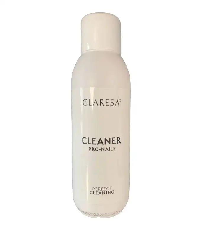 El Cleaner Claresa es el líquido desengrasante para manicura semipermanente, que limpia la uña por completo. Su uso es imprescindible para preparar la uña antes de aplicar la base, y también para retirar el residuo pegajoso (capa de dispersión) que deja la manicura semipermanente en su último paso (excepto si utilizas los top coats No Wipe de Claresa). Además limpia los pinceles profesionales de manicura de manera eficaz mojando el pincel en cleaner y secando en papel de celulosa.