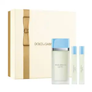 DOLCE -amp; GABANNA Set Light Blue Eau de ToiletteDolce -amp; Gabbana Light Blue Eau de Toilette es una fragancia que encapsula la frescura y seducción del verano mediterráneo. Creada en exclusiva por Olivier Cresp para Dolce -amp; Gabbana, esta fragancia ofrece una experiencia olfativa vibrante y envolvente.Opciones del Set: Set Light Blue Eau de Toilette 100 ml + Body Cream 50 ml + Mini 10 ml.Set Light Blue Eau de Toilette 200 ml + Light Blue Eau de Toilette 25 ml.Set Light Blue Eau de Toilette 100 ml + Body Cream 50 ml.Notas de la Fragancia:Salida: Notas jugosas de limón siciliano y manzana Granny Smith se combinan con la elegancia de la campanilla, evocando la esencia vibrante del verano mediterráneo.Corazón: Un toque fresco de bambú, amaderado y aromático, se despliega en un bouquet de jazmín en plena flor y rosa blanca, aportando una dimensión floral y sofisticada.Fondo: La base seductora de madera de cedro de Virginia, combinada con los cálidos acentos de ámbar y una persistente