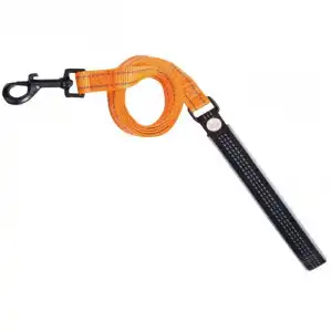 HU Correa Reflectante NaranjaCorrea de de nylon reflectante en la oscuridad con enganche tipo mosquetón realizado en una aleación de zinc cromado en color negro, muy resistente. El mango es de neopreno. No es regulable.