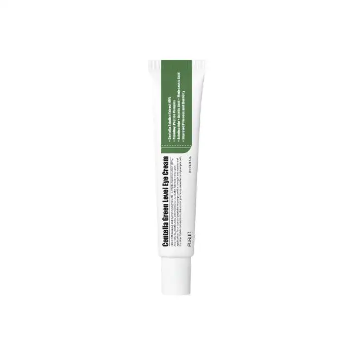Contorno de ojos Centella Green Level de Purito. Este contorno de ojos contiene un 49% de extracto de centella asiática. También contiene ácido hialurónico y cuatro tipos de péptidos para mejorar la textura y la elasticidad de la piel. Su fórmula hidrata y nutre la zona del contorno de ojos en profundidad. Podrás usar este contorno de ojos en tu rutina de día y de noche. Es ideal para pieles mixtas y grasas. Cruelty free. Vegan.