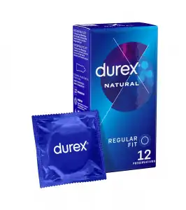 Los preservativos Durex Natural, se caracterizan por su comodidad, con forma Easy-On más anchos y fáciles de poner. Dermatológicamente testados. Preservativos transparentes con forma easy on, más largos y más anchos que facilitan su colocación, con forma anatómica que asegura la sujeción, lisos, con depósito y con aroma Zeus que enmascara el olor a látex. Anchura nominal: 56 mm. Caja 12 preservativos.