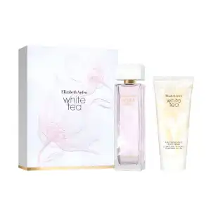 WHITE TEA EAU FLORALE EAU DE TOILETTE 100 ML + WHITE TEA PURE INDULGENCE BODY CREAM 100 ML Este elegante set de Elizabeth Arden celebra la feminidad en su máxima expresión, envolviéndote en una fragancia floral almizclada que invita a disfrutar de la belleza de los pequeños momentos. Un dúo perfecto para mujeres sofisticadas, sensibles y con una profunda conexión con la delicadeza de la naturaleza. - White Tea Eau Florale Eau de Toilette: Una fragancia luminosa y exquisitamente femenina que fusiona la pureza del té blanco con un bouquet floral vibrante. En su salida, las notas frescas de Té Blanco, Muguet y Freesia Rosa despiertan los sentidos con sutileza. Su corazón revela la elegancia del Iris Rosa, la dulzura de la Madreselva y el refinado Ambertonic. Finalmente, un fondo cálido y aterciopelado de Almizcle, Trisamber y Haba Tonka envuelve la piel con una estela sensual y delicada. - Loción Corporal White Tea Pure Indulgence: Enriquecida con ingredientes hidratantes, esta