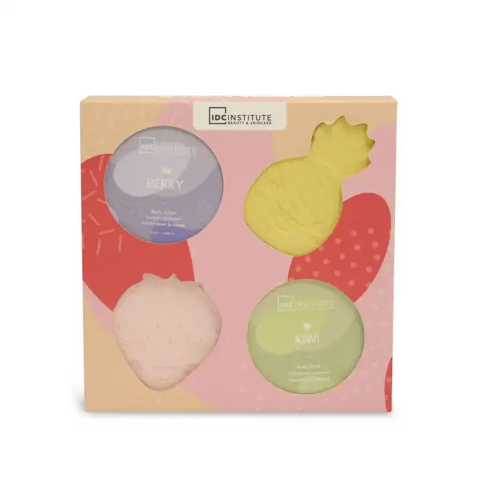 IDC INSTITUTE Fresh Vibes Set de CuidadoEste colorido set de contiene todo lo necesario para una sesión revitalizante de mimos en casa. Con aroma a kiwi y moras, será el regalo perfecto para esa persona tan especial.