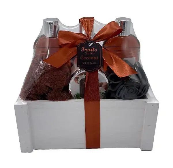 Incluye: 220ml Gel de baño 220ml Champú 130ml Loción corporal 120ml Bruma perfumada Esponja corporal Esponja EVA