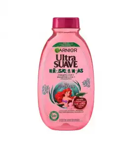 Garnier Ultra Suave Niños Champú 2 en 1 Cereza. Sin silicona, sin colorantes ni parabenos para cabello largo. Resultado: el cabello queda suave, desenredado y brillante. ¡Son más fáciles de peinar y huelen a cereza! Hipoalergénico, no pica los ojos y elimina los nudos.