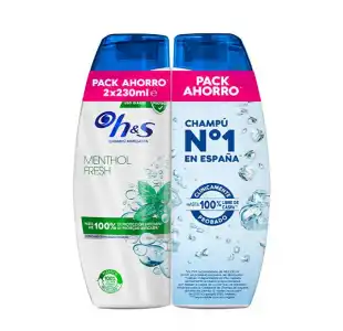 H-amp;S Pack Champú Anticaspa Menthol Fresh 2x230 MLChampú que ofrece hasta un 100% de protección contra la caspa para el cabello y el cuero cabelludo.Despídete de la caspa con el champú anticaspa H-amp;S Menthol Fresh. Su fórmula Microbiome Protect ataca la raíz de la caspa, combatiéndola y eliminando el picor y la sequedad, proporcionando una sensación de limpieza profunda y refrescante al instante para una protección contra la caspa de hasta el 100%. Al usarlo con el acondicionador H-amp;S, aumenta la protección contra la caspa en el cuero cabelludo para obtener un cabello suave y sano sin caspa.Su fórmula de champú diario tiene un pH equilibrado y está reforzada con vitaminas y antioxidantes.Probado clínica y dermatológicamente para ser eficaz, y es tan suave que puede usarse a diario.La botella está hecha con un 100% de plástico reciclado y es reciclable.