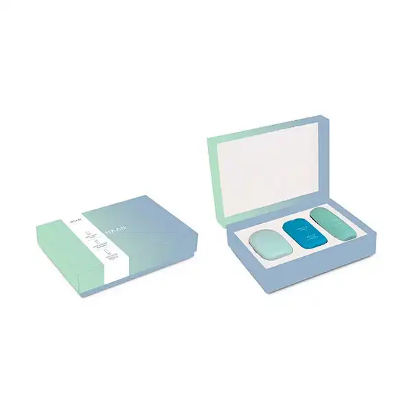 Kit de cuidado Aquamarine HAAN formado por tres piezas.Contiene: Crema de manos Fig Fizz  Pasta de dientes natural Good On Ya Sanitizer Morning Glory