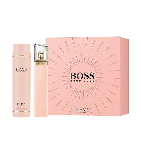 Complace sus fiestas navideñas con un estuche de regalo BOSS Ma Vie. Presentado en una caja de color rosa rubor adornada con una explosión de fuegos artificiales festivos, es una opción indulgente para cualquier mujer en tu vida.Una fragancia floral luminosa, BOSS Ma Vie captura el espÃritu independiente de una mujer que se detiene para disfrutar de los placeres simples de la vida. En el momento, es cautivadora: brilla con confianza y feminidad. BOSS Ma Vie reinventa y moderniza la frescura verde de la flor de cactus, dándole un delicado toque rosado de refinadas notas florales. La madera de cedro blando suela esta composición luminosa, una celebración de fuerza femenina. La loción corporal perfumada BOSS Ma Vie suaviza e hidrata la piel, dejando atrás el sutil aroma verde-floral de la lÃnea.IMPORTANTE: Es posible que el estuche que recibas no sea idéntico al de la foto. Existen varios modelos. El producto principal (fragancia, crema...) no cambia, aunque los complementos pueden diferir. El valor del estuche el mismo.