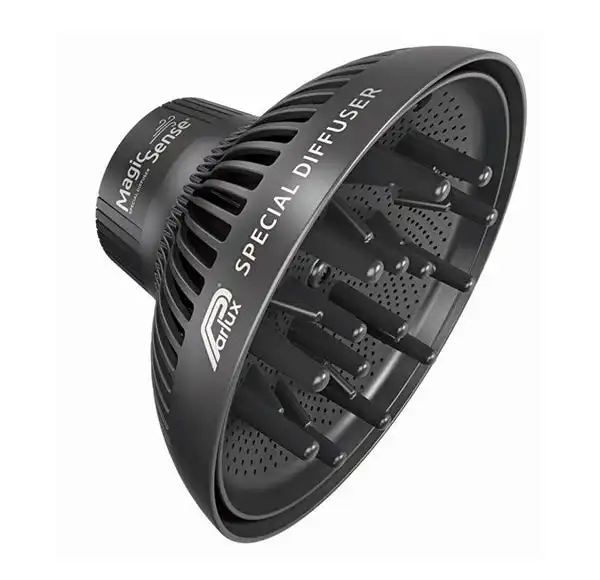 Parlux - MagicSense DiffuserCon Parlux Alyon® es la combinación ganadora para unos rizos perfectos.Parlux MagicSense® es el difusor especial que revoluciona el secado del peinado y el rizado del cabello para conseguir un efecto natural en un abrir y cerrar de ojos, sin despeinarse.Su tamaño óptimo y la distribución de los orificios han sido diseñados para facilitar el trabajo del peluquero, creando una combinación perfecta de temperatura y cantidad de aire emitido que permite un secado natural y rizos en menos tiempo, secando rápidamente las raíces del cabello sin resecar las puntas, reduciendo el encrespamiento.El diseño innovador con una tapa externa equipada con un sistema anti-calor permite al peluquero una mayor comodidad de uso, ya que puede manejar fácilmente el difusor durante su uso sin quemarse.Además, los 15 chorros especiales de masaje proporcionan una agradable y estimulante sensación en la piel del cliente.El difusor MagicSense® está equipado con un acoplamiento rápido especialmente diseñado para los difusores Parlux ALYON® y Parlux ADVANCE®. El anillo adaptador incluido en el volumen de suministro permite utilizarlo en todos los demás secadores de pelo profesionales Parlux del catálogo (excepto los modelos Parlux 3500 e Parlux 385).NUESTROS ESTILISTAS QUE HAN PROBADO EL DIFUSOR EXTRAORDINARIO MAGICSENSE® DICEN:El mejor difusor que he usado nunca Equilibrio excepcional entre temperatura y volumen de aire No estropea los peinados Secado natural en poco tiempo Secado rápido de las raíces sin resecar las puntas Gran tamaño para un secado rápido Fácil de usar ya que se mantiene frío.
