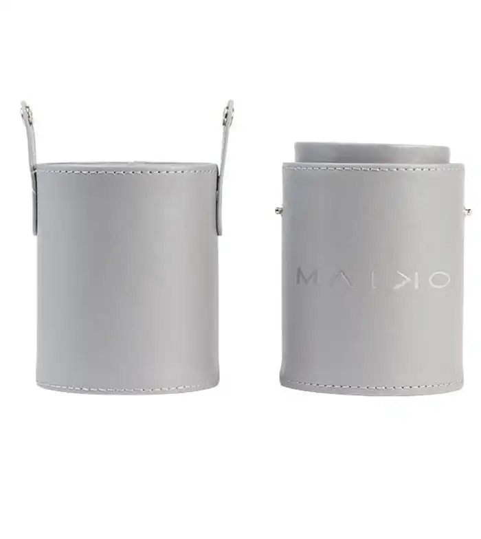 Estuche cilíndrico para guardar tus joyas de maquillaje. En piel sintética gris piedra con el logo bajo relieve. Tu accesorio imprescindible para las brochas Maiko Professional y Maiko Luxury Grey. 20.9cm