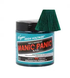 MANIC PANIC - High Voltage Enchanted ForestEnchanted Forest Classic High Voltage® es un color verde agua con reflejos azules que aporta al cabello tonos profundos. Se puede aplicar sobre cabello virgen, no decolorado, pero para obtener mejores resultados se recomienda aclarar el cabello a un rubio medio 8 o más claro.