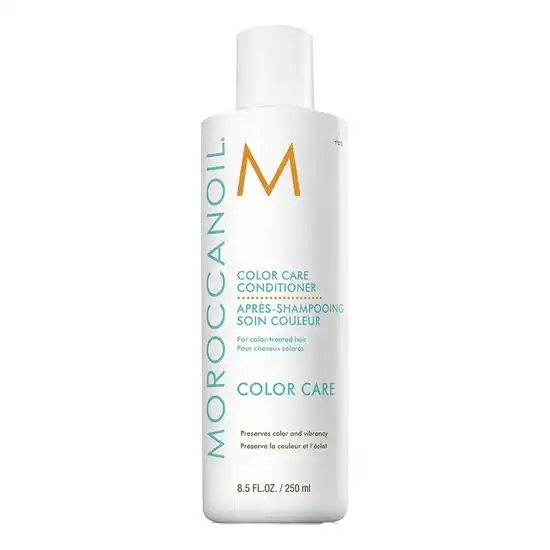 Moroccanoil Color Care Acondicionador. Prolonga la vida de su color al mismo tiempo que mejora la integridad del cabello y fomenta su brillo. Este acondicionador ultrahidratante suaviza y desenreda el cabello, dejándolo manejable y con un aspecto saludable. Además, cuenta con una tecnología exclusiva que ofrece una retención de color superior. ArganID? ayuda a reparar y sellar la cutícula para mantener el color intacto, a la vez que una Fórmula de Protección Ambiental a base de extracto de granada y protector solar defiende el cabello contra la pérdida de color y los daños causados por la luz del sol y los agresores ambientales. El 90% de los usuarios notaron un brillo más saludable desde el primer uso*. Botes hechos con un 50 % de material reciclado tras su consumo. Certificados por PETA como sin crueldad animal.