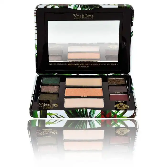 VIVA LA DIVA Move Me Jungle Paleta de Sombras Move Me Jungle Paleta de Sombras, en una preciosa caja de metal, contiene 9 tonos de sombras de ojos inspiradas en los colores de la naturaleza. Incluye tonos mate, nacarados y con brillo, desde el verde intenso al burdeos. Cruelty Free. Vegano.