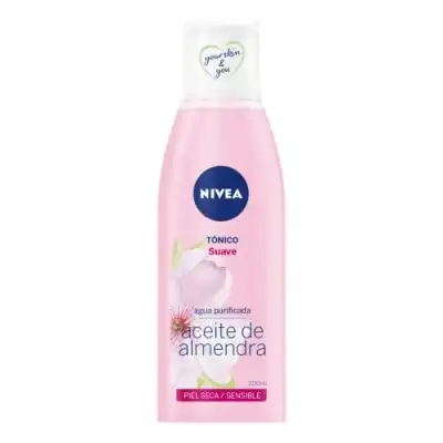 Descubre el NIVEA Tónico Facial Suave, un aliado esencial para el cuidado de la piel seca y sensible. Con una fórmula innovadora que combina Aceite Natural de Almendras y agua purificada, este tónico reequilibra y refresca tu rostro, preparándolo para absorber mejor los siguientes pasos de tu rutina de cuidado facial.
