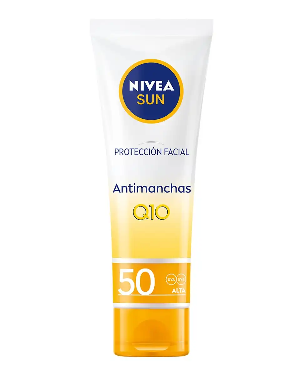 Con la NIVEA Crema Solar Facial UV Anti-edad & Anti-Manchas FP 50, disfruta del sol sin comprometer la salud de tu piel. Asegúrate de mantenerla hidratada y protegida, y presume de un rostro radiante en cualquier ocasión.