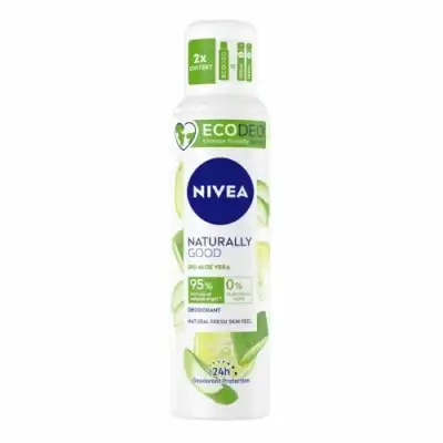 Elige el Nivea Deo Spray Naturally Good Aloe Vera para disfrutar de una frescura prolongada y un cuidado responsable con tu piel. ¡Haz que cada día sea una experiencia refrescante y ligera!