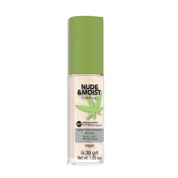 La Base de Maquillaje Hipoalergénica Nude -amp; Moist hidrata, nutre y refuerza la elasticidad de tu rostro en la línea hipoalergénica de Bell para que tu makeup tenga una base lisa y fuerte. Su fórmula destaca por su ligereza y es rica en Betaína, Extractos de semillas de Cáñamo y Melanina, tres ingredientes que protegen la piel contra agentes externos nocivos. Su cobertura modulable unifica el rostro y corrige señales e imperfecciones sin dejar sensación de sequedad para que siempre consigas el acabado deseado.