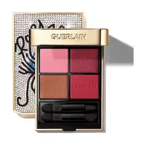 UN MAGNÍFICO ESTUCHE CON STRASS PARA UNA ARMONÍA FESTIVA Estas fiestas, la Directora Creativa de Maquillaje Violette se ha inspirado en el universo de strass de la artista Shourouk Rahiem para crear Ombres G 888 Regarde-moi!, una deslumbrante edición limitada! El estuche joya ensalzado con strass revela una original armonía de cuatro sombras deslumbrantes en tonos rojos, rosas y cobrizos que podrás combinar para conseguir un atractivo look festivo.