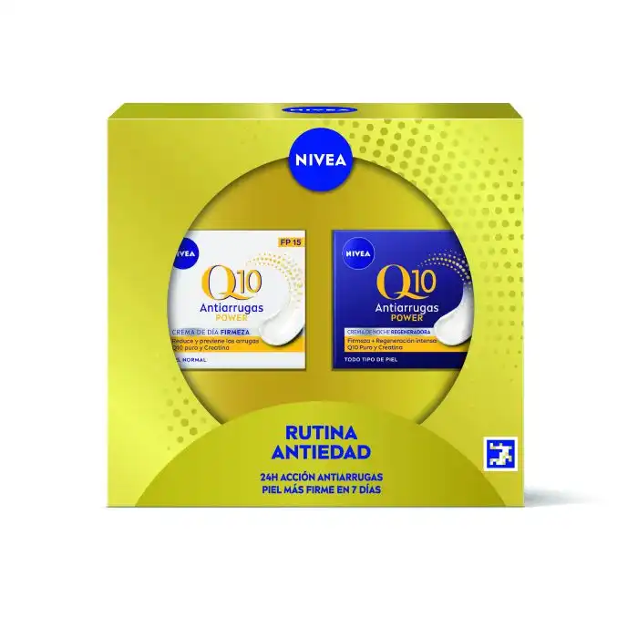 Descubre el Pack Q10 Rutina Antiedad 100 ml de NIVEA, un tratamiento completo diseñado para combatir los signos del envejecimiento y mantener tu piel radiante y saludable. Este set incluye dos productos esenciales: la Crema de Día FP15 y la Crema de Noche Regeneradora, que trabajan en sinergia para ofrecerte una piel más firme y joven en solo 7 días.