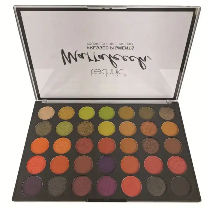 Una súper paleta de pigmento sombras y pigmentos prensados. Incluye una amplia variedad de tonos cálidos, neutros que podrás utilizar para looks de cualquier tipo, diarios y de noche. Incluye desde verdes oliva, a morados profundos, naranjas coloridos y burdeos. Todo lo que necesitas para inspirar y crear preciosos looks. Sombras de acabados mate, shimmer y metalizados. Cruelty free.