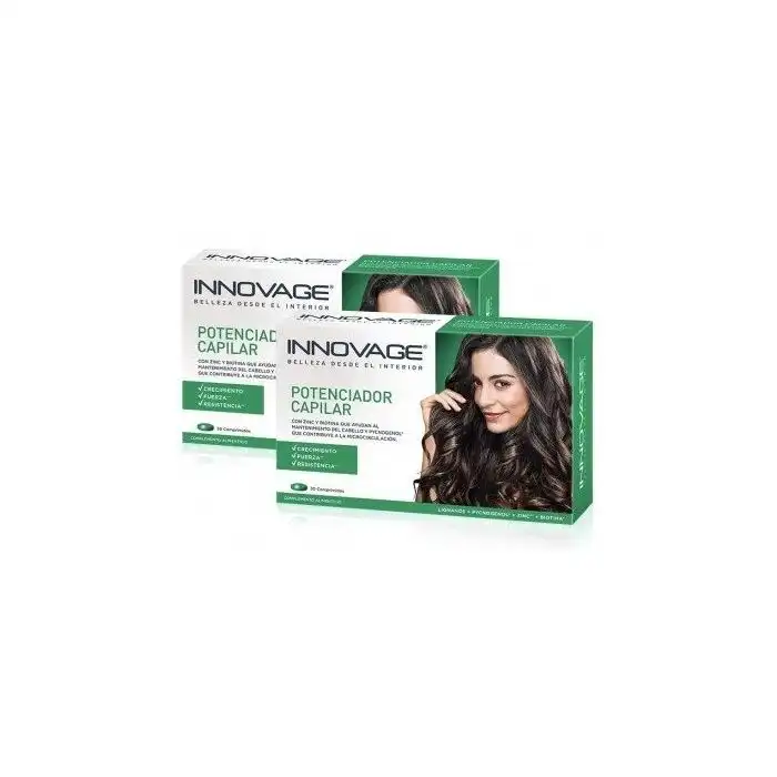 INNOVAGE Potenciador Capilar Innovage Potenciador Capilar es un concentrado nutricional de activos dirigido a nutrir y fortalecer el cabello para evitar la caída. El extracto de linaza, estandarizado con un 20% de lignanos, es el ingrediente que actúa sobre la causa hormonal de caída de cabello. La biotina y el zinc intervienen en la síntesis de la queratina, proteína que aporta resistencia al cabello, favoreciendo un mayor volumen y vitalidad. El Pycnogenol® ayuda a favorecer la microcirculación y por lo tanto hace que los nutrientes lleguen al folículo piloso.