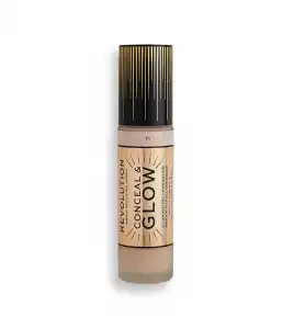 Base de maquillaje Conceal & Glow de Revolution. Base de maquillaje con una cobertura modulable y un acabado luminoso gracias a su fórmula enriquecida con vitamina C y micropartículas que reflejan la luz. Aplica suavemente la base de maquillaje sobre la piel de tu rostro para un look luminoso y natural. Ideal para conseguir un acabado radiante y glow durante todo el día. Disponible en una amplia variedad de tonos para que selecciones el que mejor se adapte al tono de tu piel. Cruelty Free. Vegan.