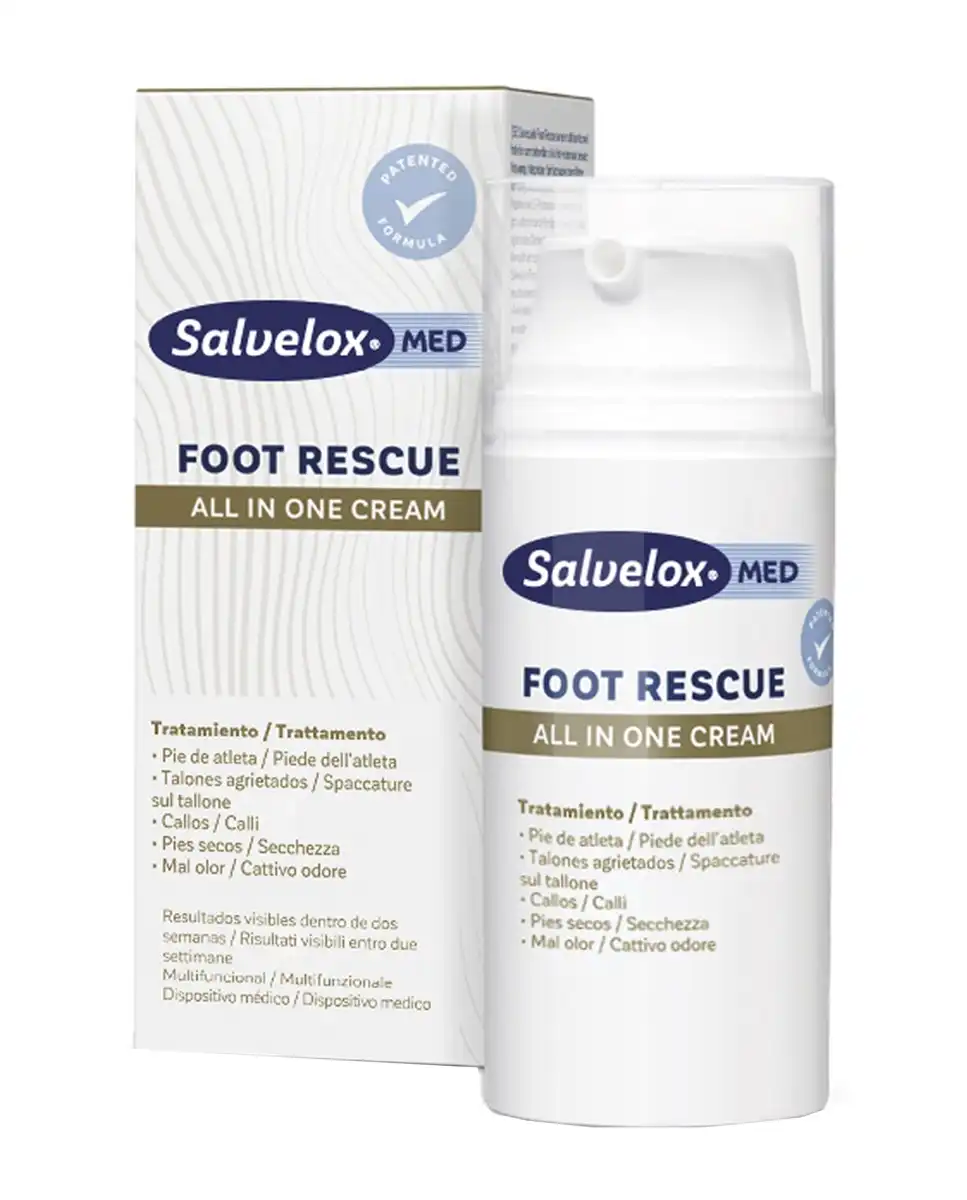 Salvelox Foot Rescue all in one cream es una crema con una fórmula patentada que está indicada para prevenir y tratar eficazmente callosidades, talones agrietados, pie de atleta, sequedad de los pies y mal olor.