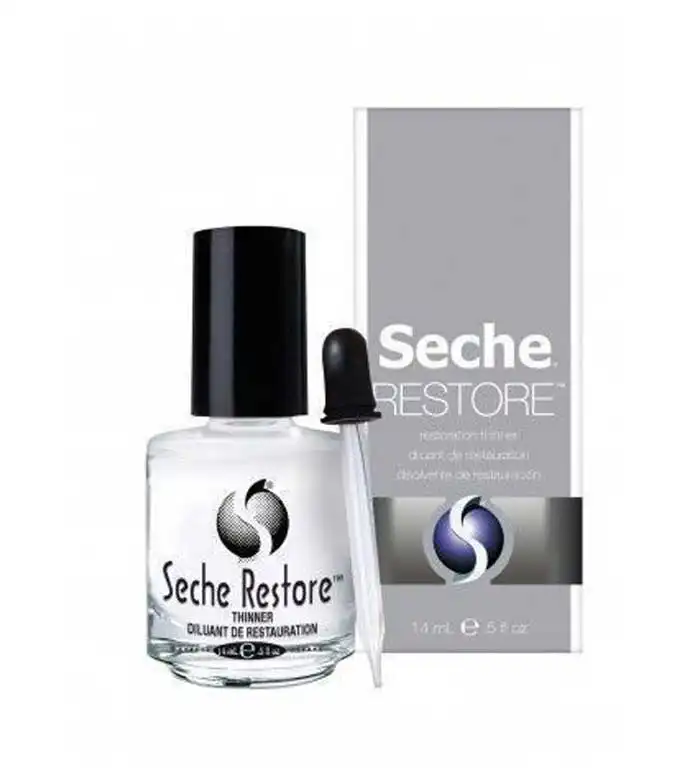 Seche Restore Thinner es el único diluyente que se puede utilizar para diluir un frasco de Seche Vite; no se puede utilizar ningún otro diluyente para diluir Seche Vite. También se puede utilizar para restaurar cualquier otro producto de esmalte de uñas, ya sea uno producido por Seche o cualquier otra marca. Este producto no disminuirá el brillo o los colores apagados y sólo reemplaza aquellos ingredientes que se han evaporado del frasco de Secehe Vite u otros esmaltes de uñas.