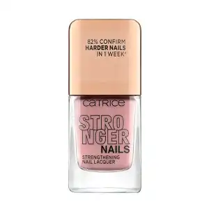 Esmalte de uñas Stronger Nails de Catrice. ¡Un esmalte 2 en 1! Este esmalte fortalece y endurece las uñas gracias a un complejo mineral que contiene zinc, magnesio, silicio, hierro y cobre. El 82% de los consumidores confirma que sus uñas ya se han endurecido y se han roto menos después de solo una semana de aplicación diaria. Vegan.