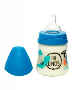 Biberón con tetina redonda 3 posiciones y capacidad para 150ml. Incorpora válvula anticólico. Fabricado en silicona. Un material altamente resistente e indeformable que no altera su color ni olor. Materiales 0% Bisphenol A. La válvula anticólico de su base ayuda a evitar molestias, como el hipo y los cólicos, que pueden derivarse de la ingesta de aire.
