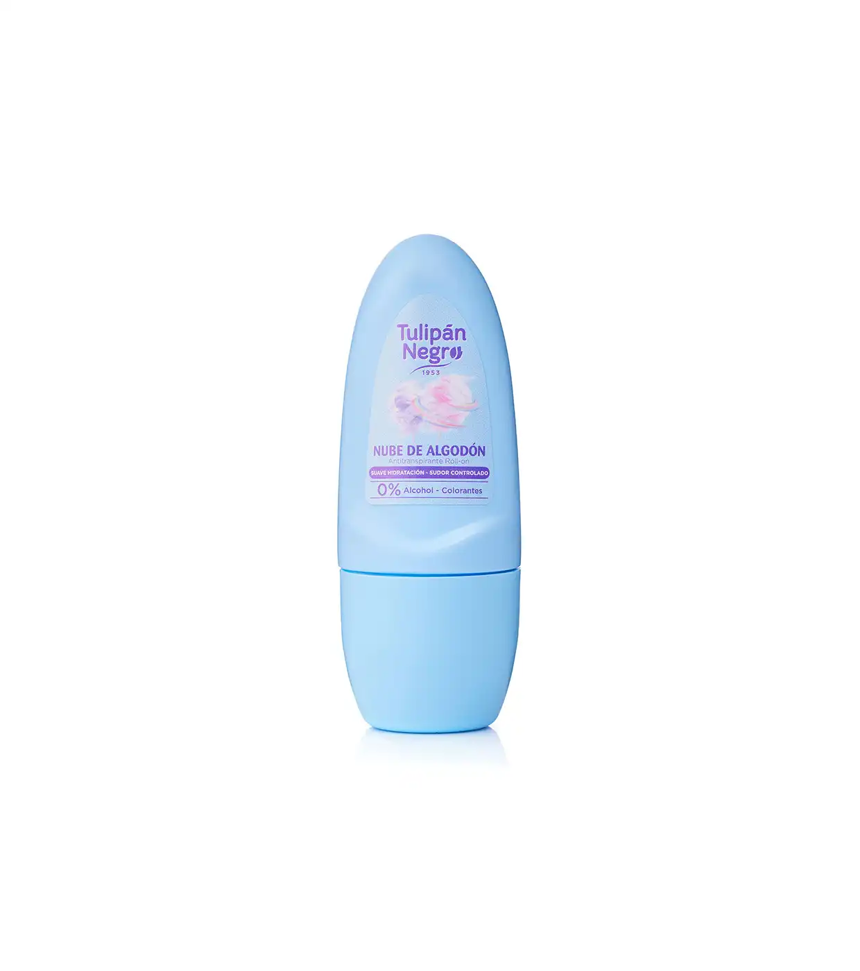 TULIPAN NEGRO Desodorante Roll On Nube de AlgodónRoll on Nube de Algodón de Tulipán Negro es un desodorante antitranspirante que protege y cuida la delicada zona de la piel de las axilas manteniendo el sudor controlado durante 48 horas. Perfumado con una deliciosa fragancia donde la nube de algodón y las esencias frutales son algunos de sus acordes más reconocibles.