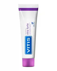 Vitis Pasta Vitis Xtraforte Indicaciones:Personas que buscan la máxima higiene bucal.Personas que les gustan los sabores fuertes y frescos.Apta para personas celíacas.Descripción:VITIS xtra forte pasta dentífrica sabor menta fuerte de uso diario, con potente acción antiséptica y antiplaca que proporciona una higiene total.Especialmente formulada para prevenir la formación de placa bacteriana (biofilm oral).Posee un refrescante sabor a menta fuerte que alarga la sensación de frescor e higieneComposición:Cloruro de cetilpiridinio (CPC). Antiséptico de uso diario, que previene la formación de placa bacteriana (biofilm oral) y ayuda a reducir su acumulación. Previene la aparición o el desarrollo de gingivitis.Fluoruro sódico. (1.450 ppm de ión flúor. Nivel máximo recomendado). Remineraliza el esmalte y previene la caries dental.Modo de Empleo:Aplicar sobre un cepillo adecuado.Cepillar los dientes un mínimo de tres veces al día o después de cada comida.