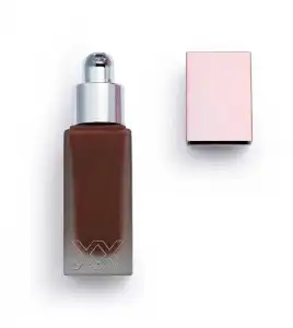 Base de maquillaje Glow Skin Fauxxdation de XX Revolution. Esta es una base de maquillaje líquida de fórmula ligera y modulable, pudiendo lograr una cobertura de media a completa. Proporciona un acabado de lo más luminoso y radiante, gracias a las partículas de perla que contiene. Contiene ácido hialurónico, por lo que además hidrata la piel. Disponible en una amplia gama de tonos. FX18 para una piel oscura con subtono cálido. Cruelty Free.