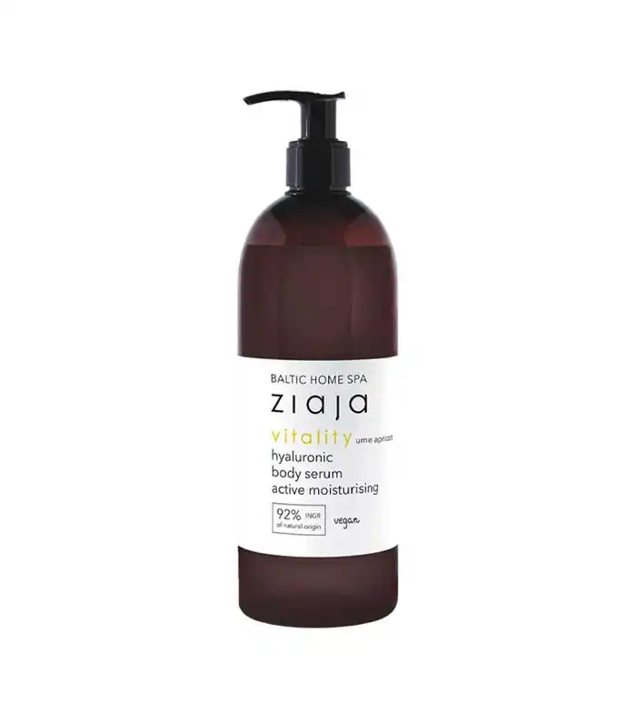 Sérum corporal Vitality de la línea Baltic Home Spa de Ziaja, Su fórmula hidrata intensamente la piel a la vez que la reafirma y aporta elasticidad. Contiene un 92% de ingredientes de origen natural y está enriquecido con ácido hialurónico. Tiene una fórmula ligera, refrescante y energizante, y un delicioso aroma a albaricoque. Vegan. Accede a todos los productos de la línea Baltic Home Spa a través de este enlace.
